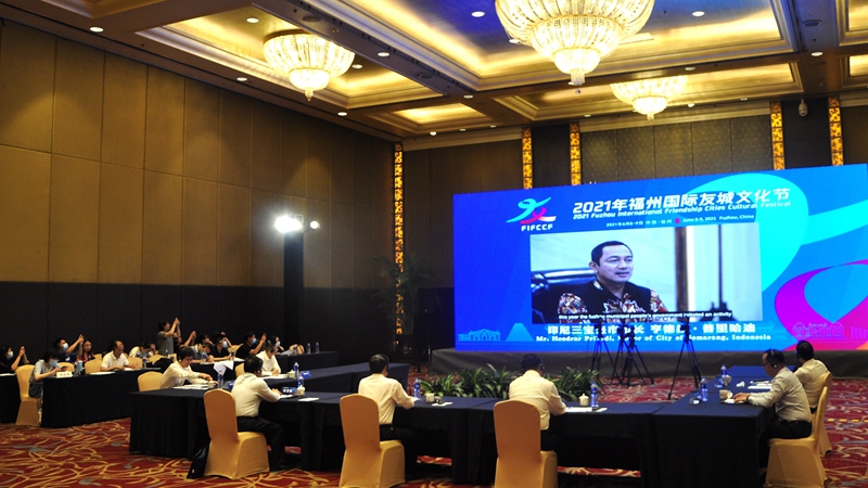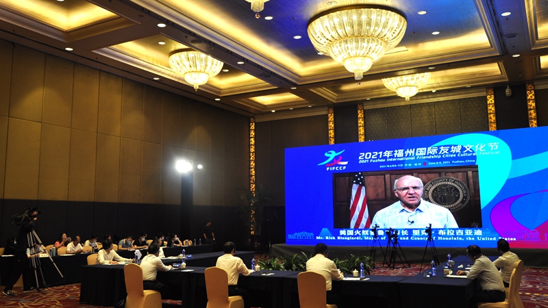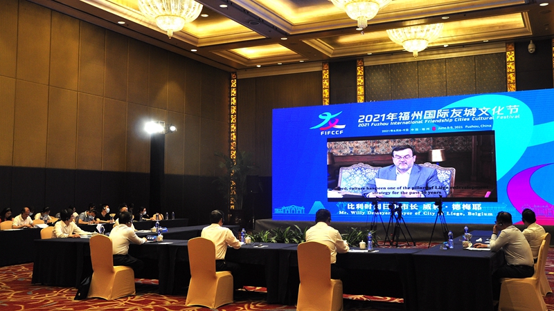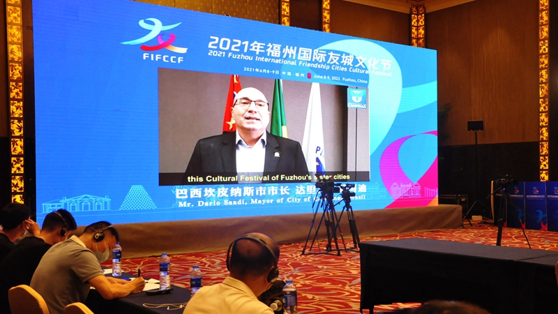 东南网6月8日讯(东南网记者 吴隆重 文/图)北京时间6月8日,2021年福州国际友城文化节以全球多点连线的方式在福州开幕。福州市市长尤猛军、副市长杭东等出席活动。