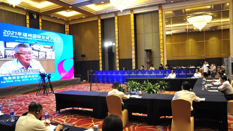 马来西亚诗巫市市长丁永豪致辞 日本长崎市市长田上富久、美国塔科马市市长吴德芝、巴西坎皮纳斯市市长达里奥·萨阿迪、俄罗斯鄂木斯克市市长法典娜·奥克萨娜·尼古拉耶芙娜、印尼三宝垄市市长亨德拉·普里哈迪、澳大利亚霍巴特市市长安娜·雷诺斯、比利时列日市市长威利·德梅耶、美国火奴鲁鲁市市长里克·布拉吉亚迪、马来西亚诗巫市市长丁永豪通过线上方式出席开幕式并致辞。他们分别介绍了与福州市缔结友好城市关系的情况和各自城市的文化特色,表达了希望与福州市持续增进了解、密切双方联系、深化交流合作的意愿。