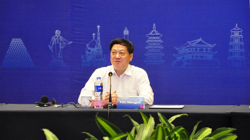 福州市人民政府市长尤猛军致辞 尤猛军表示,希望通过举办本届文化节,推送文化精品,展示福州特色,吸引全世界越来越多的朋友了解福州、喜爱福州,推动多元文化深入对话、充分交融,促进各友好城市文化互鉴、民心相通,不断拓展合作领域,共同谱写国际友城交流合作新篇章。
