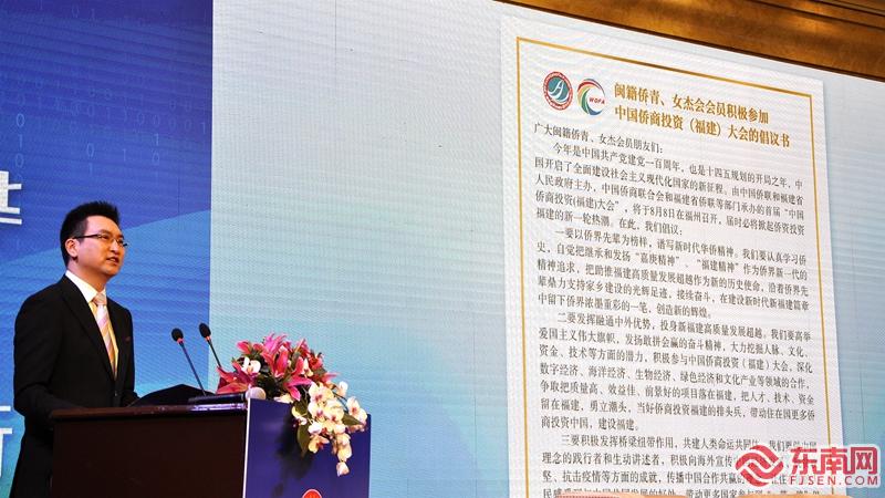 福建省侨界青年联合会、福建海外杰出女性联谊会现场共同发表《闽籍侨青、女杰会会员积极参加中国侨商投资(福建)大会的倡议书》。