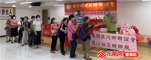 东南网香港5月9日讯(本网特约记者 李一杰 文/图)为庆祝一年一度的母亲节,为所有母亲送上祝福,香港闽侯同乡联谊会于5月8日在香港荃湾杨屋道举行了「爱心福袋赠乡亲」活动,向女性乡亲赠送水果、鲜花、长寿面及防疫用品等。