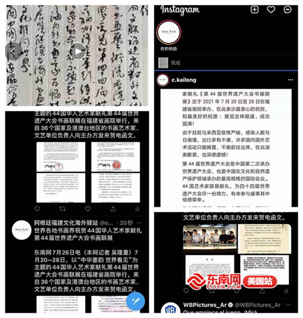 来自中国、阿根廷、安哥拉、巴西、德国、俄罗斯等44个国家的100多名创作者聚焦“中华墨韵 世界看见”主题,以书言志、以画传情,展现“有福之州”的人文之美、清新福建的自然之美,生动表达了身居海外的中华儿女对第44届世界遗产大会的美好祝福。