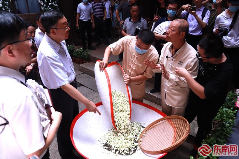 东南网8月5日讯(本网记者 吴隆重)第44届世界遗产大会于7月16日至31日在中国福州成功举行。日前,部分参与世界遗产大会的领导和嘉宾到闽榕茶业·福州茉莉花美学馆进行交流考察,欣赏了原创沉浸式戏剧《九窨天香》,观看了福州茉莉花茶窨制工艺非遗传承人陈晓峰演示福州茉莉花茶窨制工艺,听取了福州茉莉花茶窨制工艺非遗传承人、闽榕茶业董事长王德星的解说。参与此次活动的嘉宾纷纷点赞福州茉莉花茶文化,对国家级非遗代表性项目花茶制作技艺“福州茉莉花茶窨制工艺”的传承保护工作表示赞许。