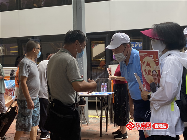 东南网香港9月14日(本网特约记者 江婉颖)9月11日,香港特区选举委员会第三界别同乡社团分组当选委员在全港多区设立街站,向市民宣讲新选制度、派发传单,与市民交流,听取意见建议。记者深入多个街站现场,直击选委宣传政纲与市民互动的现场。