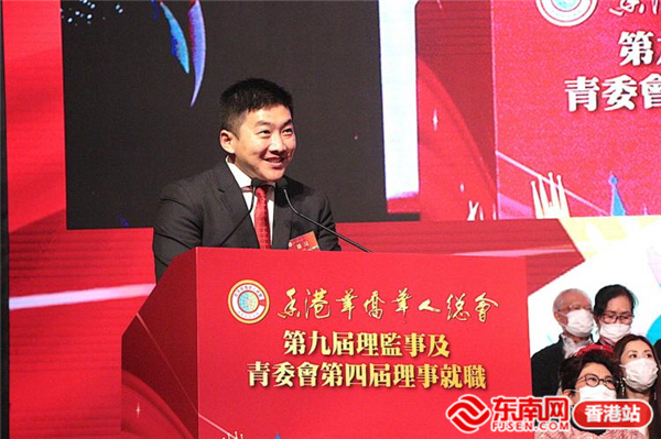 余国春在致辞中表示,香港华侨华人总会是香港侨界社团联会的发起社团之一,是爱国爱港一股重要力量。自创办以来,香港华侨华人总会始终坚持创会宗旨,为香港繁荣稳定而不懈努力。希望在陈昆的带领下,年轻一辈可以更好地传承父辈的爱国爱港情怀,为香港和谐稳定、国家繁荣富强谱写新篇章、开创新辉煌。