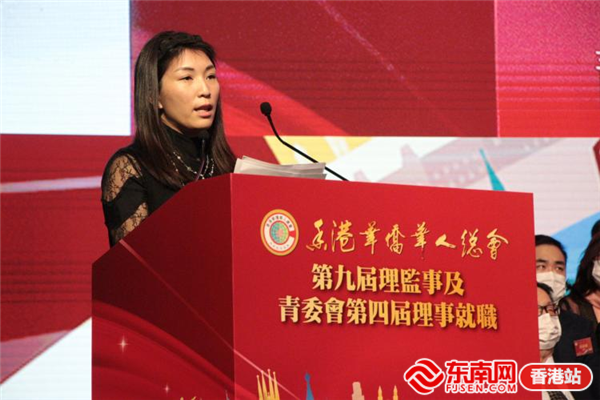 香港华侨华人总会青委会常务副会长梁炜茵致辞。