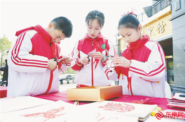 13日,南平市建阳区开展建盏雕“福”、雕版印“福”、剪纸刻“福”、春联写“福”等活动,让群众感受“福”文化。福建日报记者 蒋丰蔓 通讯员 江苏闽 叶倩秋 摄