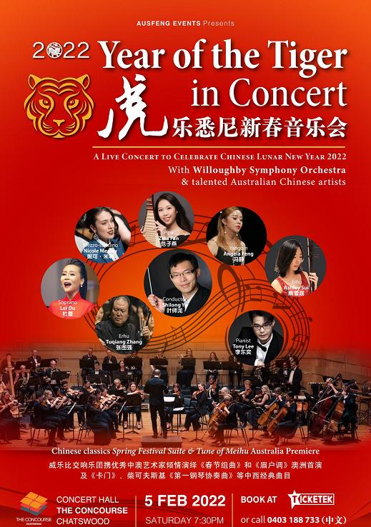 2月5日,悉尼中国文化中心将支持澳中文化艺术促进会举办“虎乐悉尼新春音乐会”,由曾获得“艾伦·贝尔豪斯青年指挥奖”的华裔青年指挥家叶师龙担任指挥,中澳歌唱家、演奏家与新州威乐比交响乐团联袂演出的《春节组曲》《我和你》《帕米尔我美丽的家乡》《卡门:爱情是一只自由的小鸟》以及柴可夫斯基《第一钢琴协奏曲》等中西名曲,将通过线下演出和线上直播等方式进行。让二胡、琵琶、扬琴等中国民乐与西方管弦乐器碰撞融合、和谐奏鸣,让悠扬的民乐、嘹亮的民歌,绽放音乐之美。