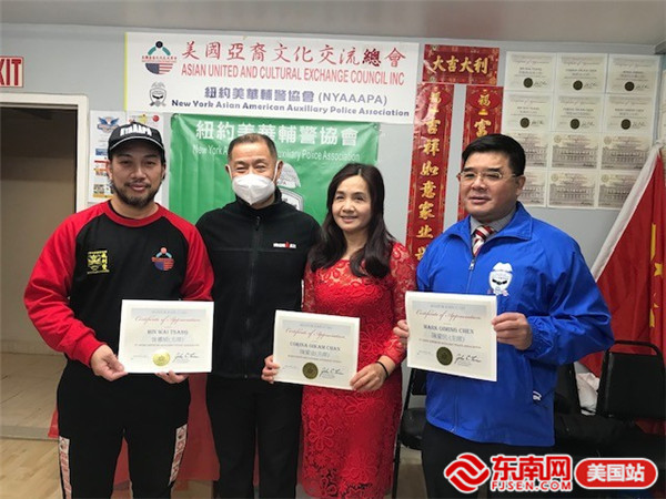 美国亚裔文化交流总会创会主席、纽约美华辅警协会主席曾宪威,美国亚裔文化交流总会主席陈爱金,美国亚裔文化交流总会名誉主席、纽约美华辅警协会主席、美国福建岭南同乡总会主席陈爱民,美国福建会馆(原三山会馆)总顾问王纲勇出席活动,纽约州参议员刘醇逸,福建同乡会负责人郑思褀,福建长乐公会主席卢建顺,美国福建会馆代负责人郑振何,美国温州同乡会主席吴洪光,美国金锋联合总会主席张银官,美国八闽联合总会主席林强,美国福建商会主席林慈飞,全美林氏宗亲总会主席林增金,第一常务副主席林旋,美国纽约第三社区委员会长郑时甘,美国猴屿同乡会主席郑日贵以及纽约美华辅警协会治安巡逻队员等嘉宾应邀出席活动。