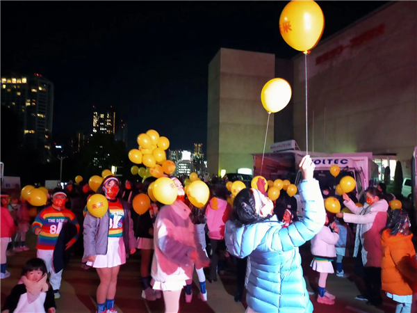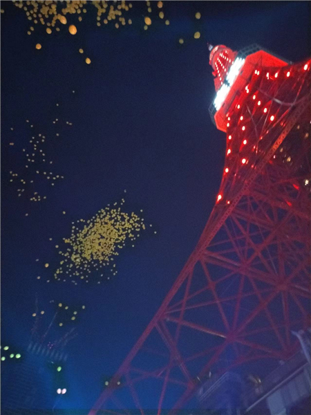 观看第四届东京塔点亮“中国红”活动的现场人群(主办方供图)