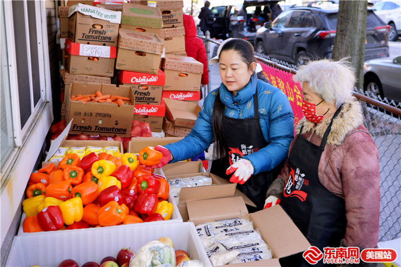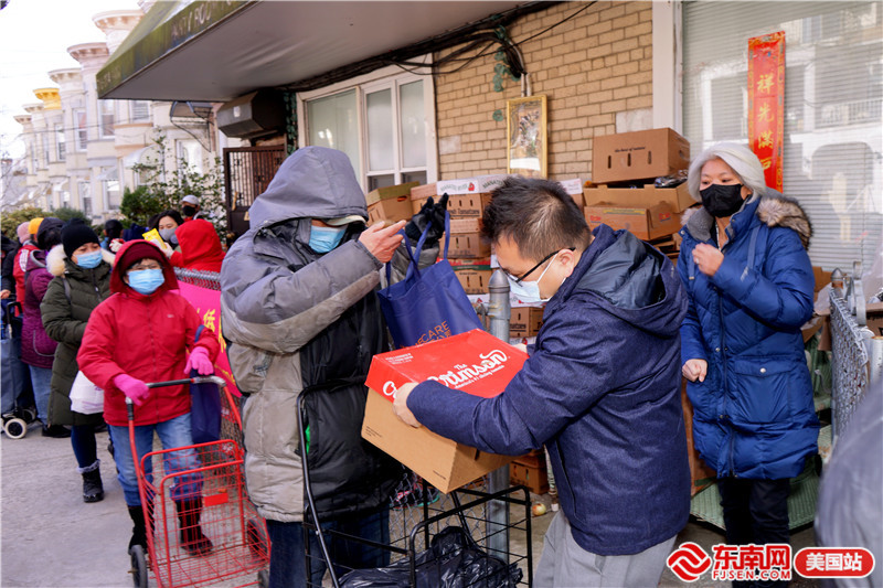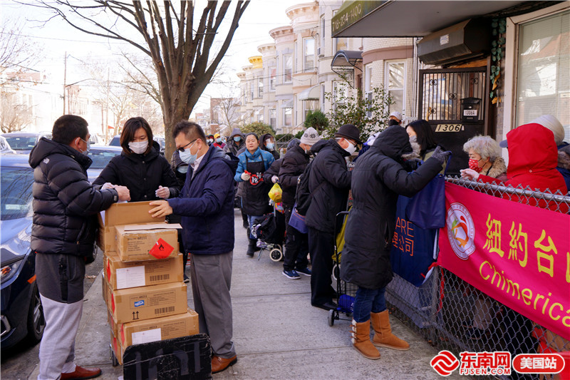 东南网美国2月8日讯(本网特约记者 陈伟彬 梅子华)纽约台山侨胞妇女联合会携手真爱护理公司于当地时间2月5日在位于美国纽约布碌仑戴克高地的会所内为民众派发食品、防疫品。同时,为社区侨胞送上新春祝福。