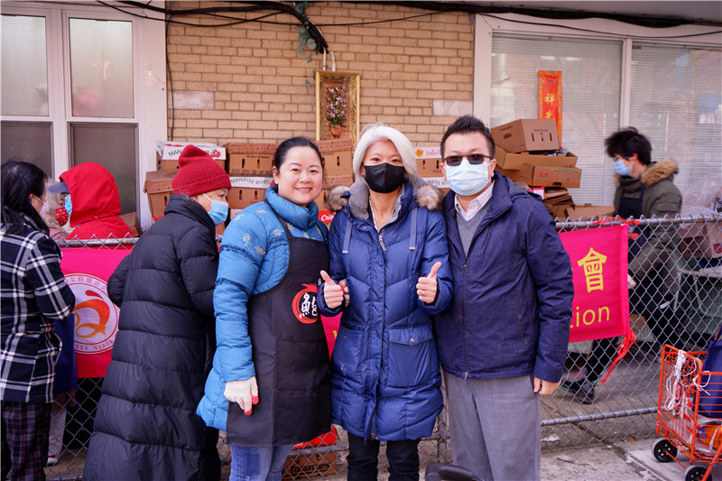 纽约台山侨胞妇女联合会会长王一冰称,今天派送的食物有五彩椒、苹果、大米和意大利粉等,寓意人们的生活丰富多彩。祝福大家在新的一年里大家平安健康、阖家欢乐!
