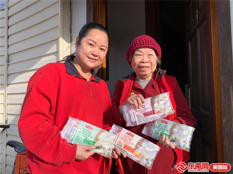 纽约台山侨胞妇女联合会会长王一冰专程把汤圆送到90岁高龄的总顾问陈丽娴的家里