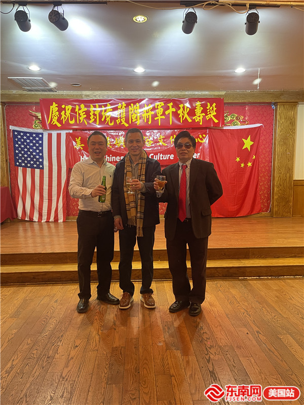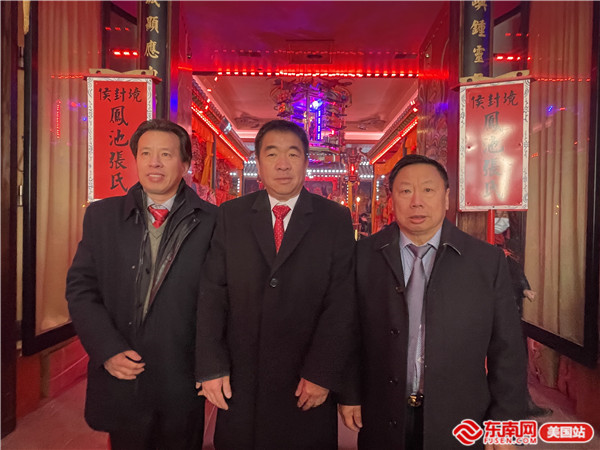 活动合影(从左至右分别为费城猴屿联谊会会长张子钟、费城猴屿民俗文化中心董事长张文钦、美国福建猴屿联谊会主席张辉)
