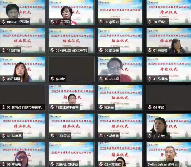 东南网菲律宾2月22日讯(本网特约记者 洪宾宾)2月19日,由国务院侨务办公室主办,福建省人民政府侨务办公室、泉州师范学院、菲律宾晋江同乡总会(下简称“晋总”)、菲律宾华文学校联合会共同承办的2022年菲律宾华文教育线上研习班在泉州师范学院以线上线下相结合的方式举行结业仪式。