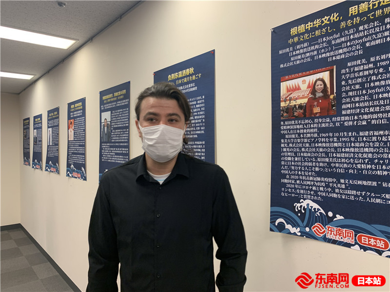 现场,前来观展的日本友人诹访信博向记者讲述了他与福建人民友好交往的故事,对福建人为中日友好交流作出的贡献表示感谢。他表示,冬奥会展示了一个更高更快更强的中国,希望疫情过后可以去中国旅游,结交更多的朋友。