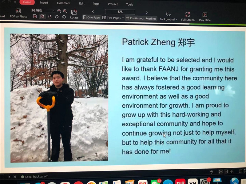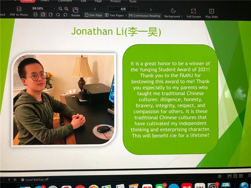 新泽西福建同乡会第二届“韫青奖学金”获奖者
