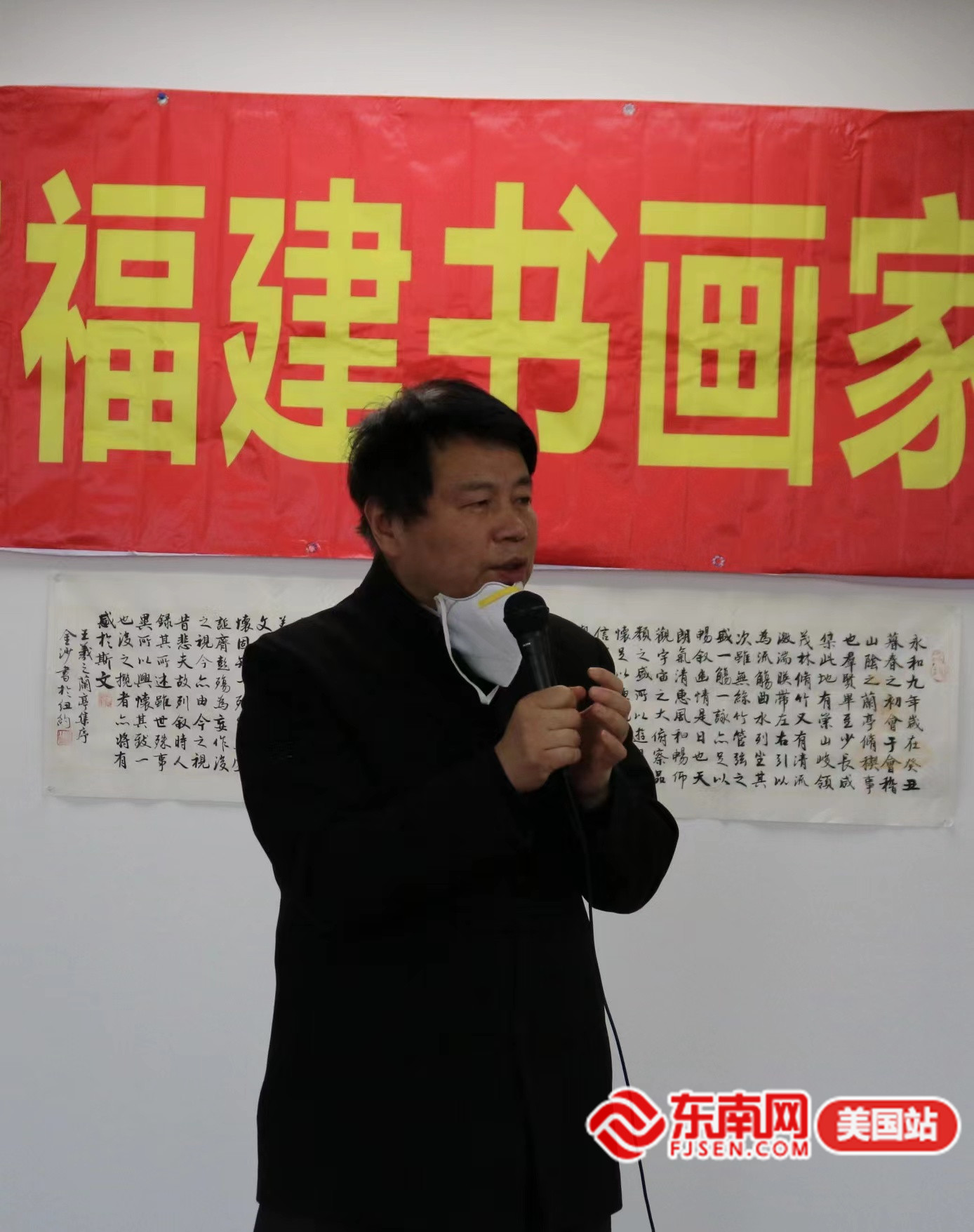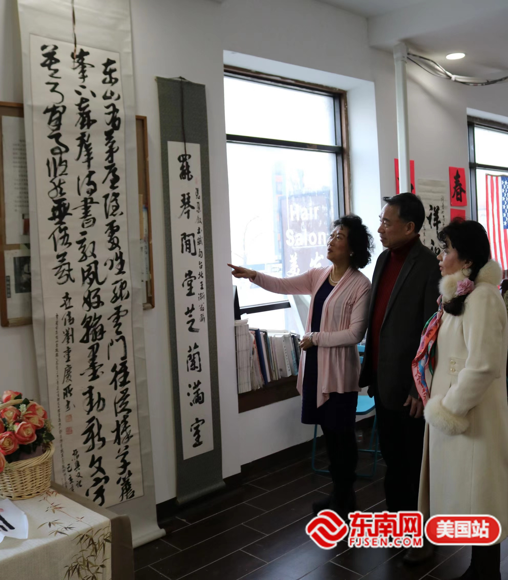 东南网美国3月10日讯(本网特约记者 白水 文/图)为促进书画艺术交流,传播中国传统文化,当地时间3月5日,美国书画艺术研究会联合美国福建书画家协会共同在纽约书画艺术交流中心举办迎新书画联展。