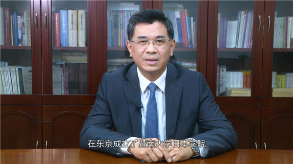 典礼上,林如鹏以视频方式进行致辞。林如鹏介绍了暨南大学因侨而建、因侨而兴的光荣历史,回顾中华文化与海外华人华侨之间的双向互动关系。林如鹏勉励日本学院师生要在革故鼎新的时代洪流中,锚定历史方位、应对挑战、把握机遇,在文明的交流互鉴中,丰富拓展全人类共同价值的内涵和外延,并通过在日本学院的学习,涵养“暨南精神”,开阔世界胸襟,成为忠信笃敬的践行者,中华文化的传播者,中日交流的推动者,人类命运共同体的建设者,成为能堪时代重任、行走于世界的“暨南金字招牌”。