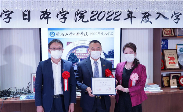 为千代田教育集团、暨南大学日本学院学术顾问吴川颁发聘书(主办方供图)