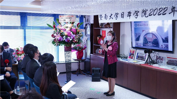 暨南大学国际交流合作处处长兼暨南大学日本学院院长蒲若茜致辞(主办方供图)