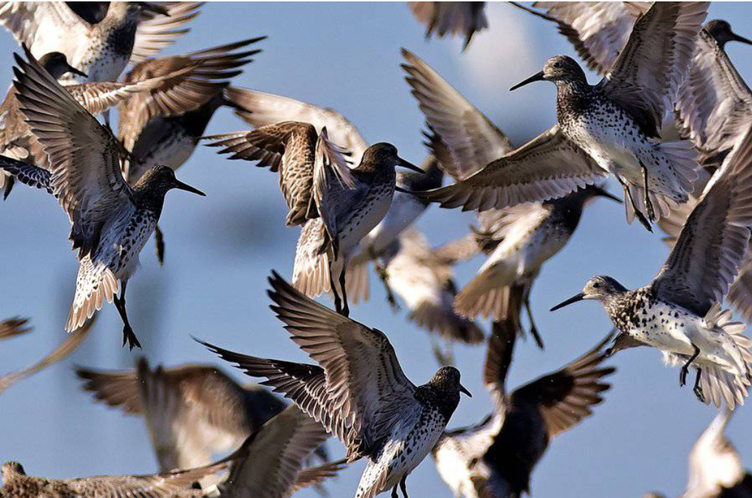 近日,厦门迎来了春季候鸟迁徙小高峰,厦门市观鸟协会会员在翔安区周边海域观测到大量往北迁飞的鹬科鸟类。