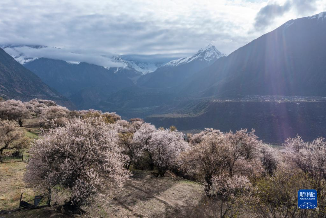 这是南迦巴瓦峰脚下的桃花林(4月13日摄,无人机照片)。