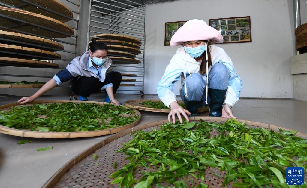 毛纳村茶农在手工茶坊内工作(4月10日摄)。