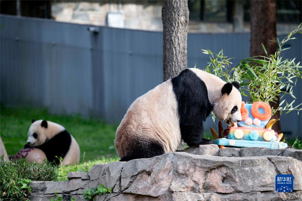 当日,位于美国首都华盛顿西北部的史密森学会国家动物园举行活动,庆祝大熊猫抵达美国暨该动物园大熊猫项目50周年。