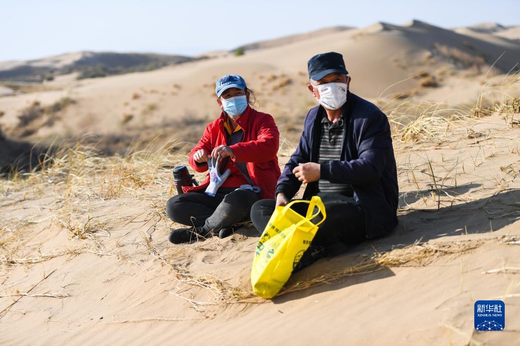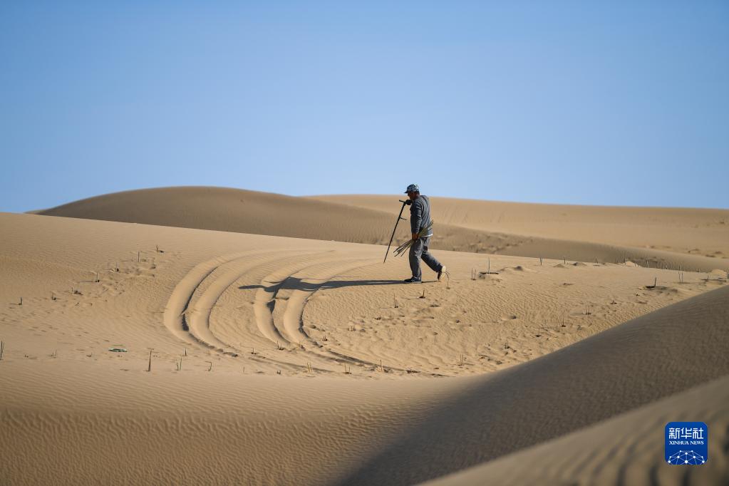 The ecotourism Area of Yin ken Ta La of Datelaqi in Inner Mongolia Autonomous Region lies in Kubuqi Desert. Recently, workers have been planting trees for desertification control, in order to cultivate and make the desert green.