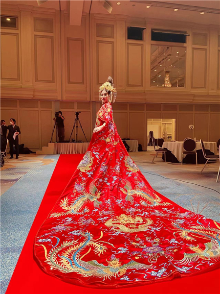 藤原娟子(中文名:褚娟)在展示服饰(受访者供图)