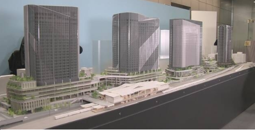 “高轮Gateway”车站周边地区的再开发计划相关模型(日本新闻视频截图)