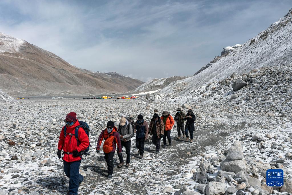 Recently,“Top Mission 2022-- Comprehensive Scientific Expedition Study on Everest High Altitude Area”is initiated in the area of Mount Qomolangma in Tibet. On May 1st, the squad went in to East Rongbuk glacier, carrying the advanced scientific equipments to give the glacier a thorough “examination”. Accordingly, the squad will spend one month monitoring pollutants, the Rongbuk glacier and ice lake changes, as well as the greenhouse gas emissions from rivers and lakes covering the high-altitude area from the Mount Qomolangma base camp to the East Rongbuk glacier. (Photo by Xinhua reporter Jiang Fan)