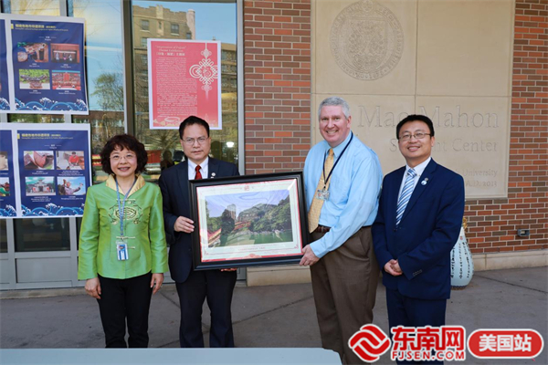 东南网美国站执行总监朱立业代表福建方赠送武夷山画