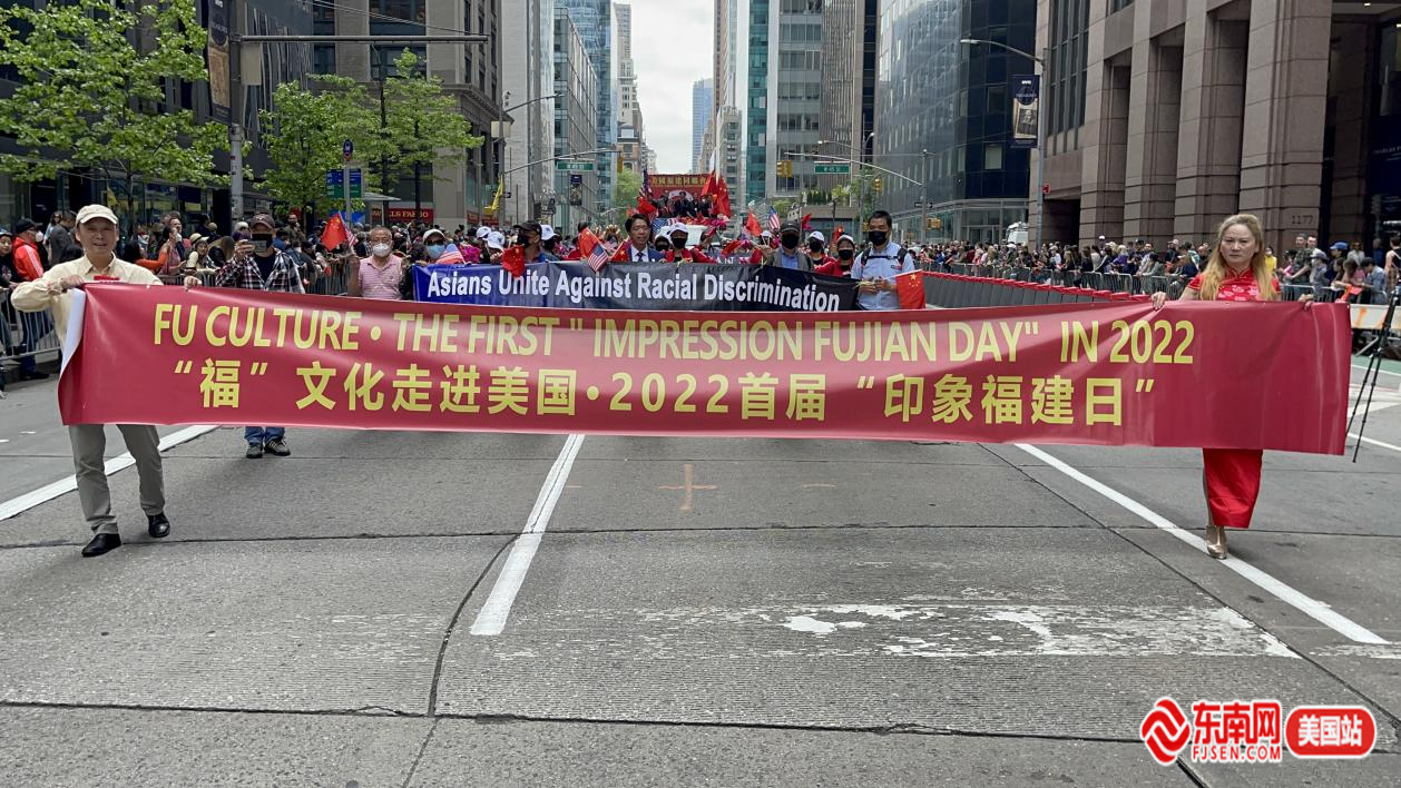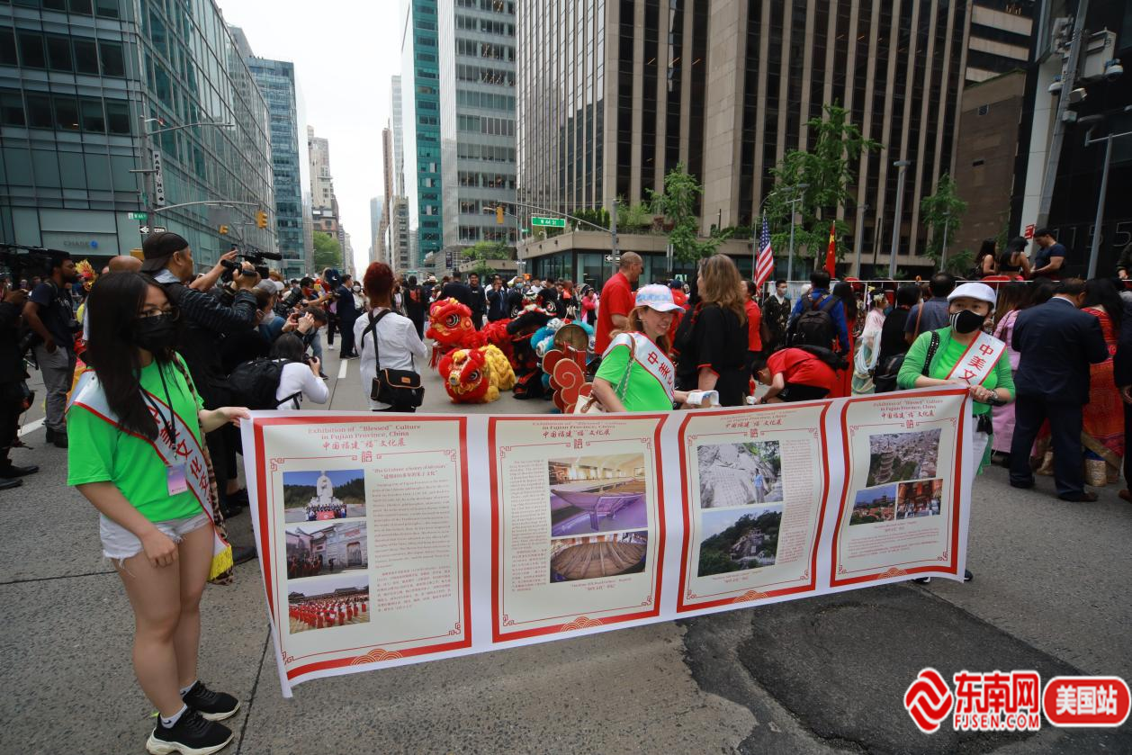 在花车游行队伍中,福建“福”文化成为了靓丽的风景线,在美国福建同乡会的花车上张贴着中英文版的福建“福”文化图片;展示着福建“福”文化的独特魅力;在街道两旁的部分地方也张贴着福建“福”文化图片,让观众零距离了解福建,感悟“福”文化。福建“福”文化走进美国纽约,也是亚太裔传统月·2022首届“印象福建周”系列活动的第三场。