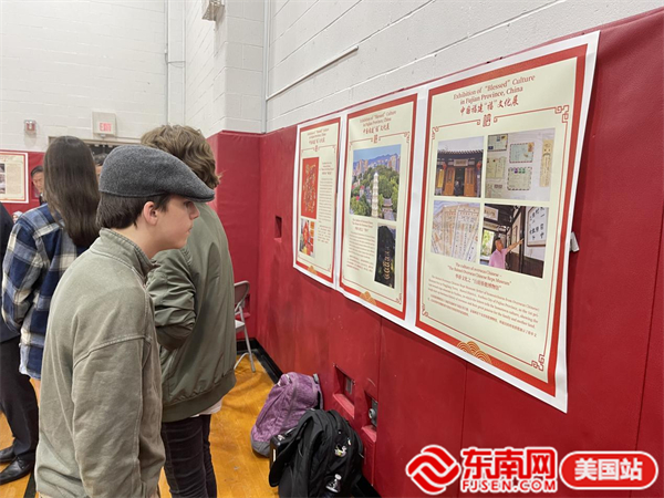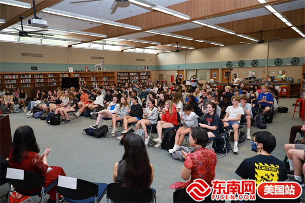 现场随处可见到精心布置的横幅、整齐美观的福建“福”文化图片;随处听到师生们热烈互动的声音均体现了格伦瑞奇高中对中美文化交流互鉴活动的重视。