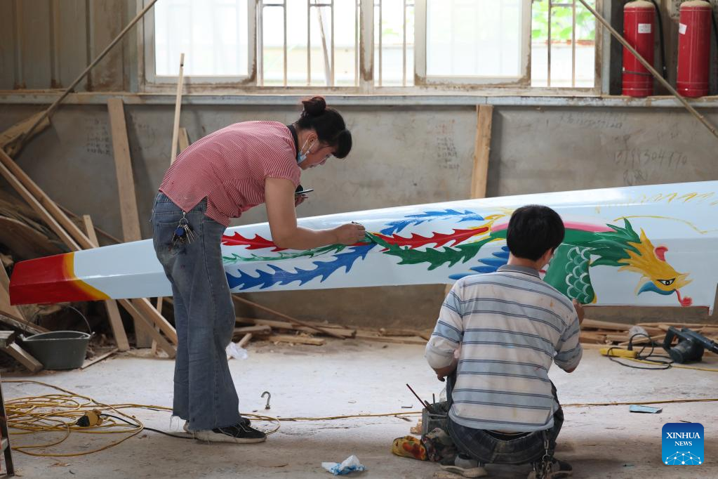 Fangzhuang, known as "Dragon Boat Village", has a traditional dragon boat manufacturing history for more than 700 years. Every year, more than 200 hand-made wooden boats, carefully built by craftsmen, are sold nationwide and even overseas from the village. (Xinhua/Jiang Kehong)