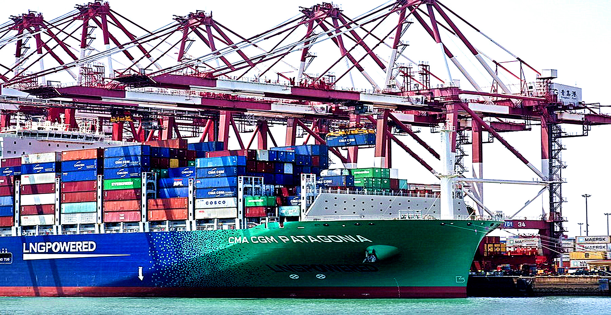 Photo taken on May 1, 2022 shows a container vessel docking at the Qianwan Container Terminal in Qingdao, east China's Shandong Province. (Xinhua/Li Ziheng)