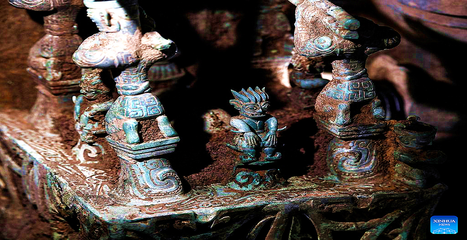 A treasure trove of exquisite bronze, gold and jade wares, including at least 10 bronzewares unearthed for the first time in the history of human civilization, have been excavated at the site. (Xinhua/Wang Xi)