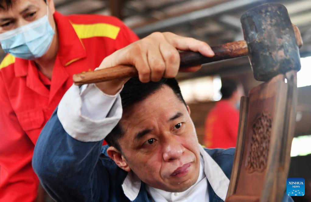 Classical craft furniture is of high value in terms of its artistic and cultural connotations. "It is a carrier of traditional Chinese culture and I will try my best to show the culture to the world," said Chen. (Xinhua/Wei Peiquan)