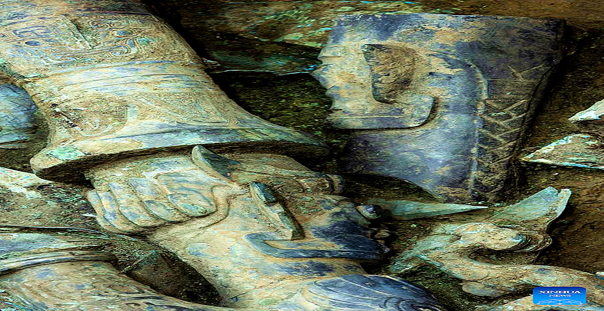 Photo taken on June 1, 2022 shows scattered parts of a newly unearthed bronze sculpture at the No. 8 sacrificial pit at the Sanxingdui Ruins site in southwest China's Sichuan Province. (Xinhua/Shen Bohan)