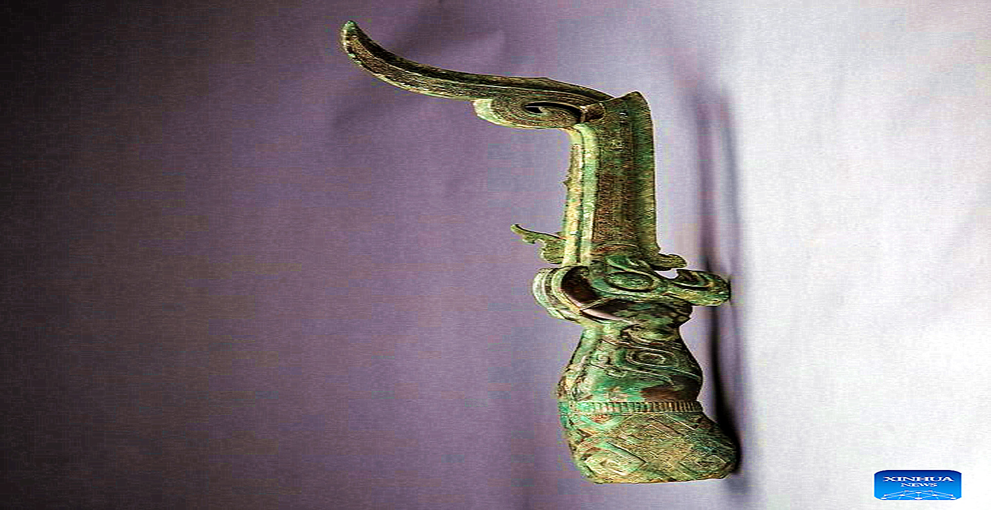 Photo taken on June 15, 2022 shows a bronzeware part that was unearthed from the No. 2 sacrificial pit in 1986 at the Sanxingdui Ruins site in southwest China's Sichuan Province. (Sanxingdui Museum/Handout via Xinhua)