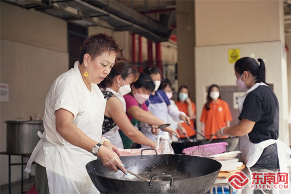 活动当天,妇女组擅长厨艺的成员们也在一大早就开始忙碌起来,还拉来了自己的亲友团帮忙。手脚麻利地把一道道美食送进礼堂,而且还临时增加了红糟扣肉包和醉排骨,让近500位来宾大快朵逸。现场的乡亲表示“在新加坡福州特色的食物不太常见,能一次过吃到这么多福州特色美食真是太难得了。”