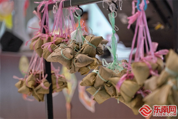 不少福州独特的端午习俗也被搬到了活动现场。专门为参加活动的乡亲特别准备了亲子包粽子比赛,邀请了在场的家庭组队,特别是包福州传统的花生粽。比赛开始后,参赛的父母带着孩子使出了浑身解数,卷粽叶、放糯米......经过一阵“混战”后,孩子们包的粽子,有的结实饱满,有的则松散不成形。但比赛重在参与,无论包得好不好,所有参赛的家庭都收获了欢声笑语。