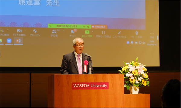 日本华人教授会议代表、山梨学院大学特任教授熊达云代表主办方致开幕辞(日本华人教授会 供图)