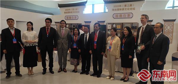 东南网6月29日讯(本网记者 张立庆 卢金福 林先昌)6月29日,2022年第三届海丝国际茶文化论坛在“中国白茶之乡”福建宁德福鼎市拉开帷幕。省政协副主席阮诗玮,斯里兰卡驻华大使帕利塔·科霍纳,日本驻华使馆公使贵岛善子,省委宣传部副部长、福建日报社社长叶燊,宁德市委书记梁伟新,福鼎市委书记林青分别为开幕式致辞。