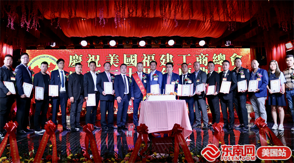 东南网美国6月28日讯(本网特约记者 白水 文/图)当地时间6月27日,美国福建工商总会(以下简称“总会”)在纽约法拉盛举行成立三十周年暨第十届新职员就职庆典晚会。美国国会议员孟昭文、州参议员刘醇逸、市议员黄敏仪、纽约民事法官李昌永、市长亚裔事务主任郑祺蓉等政、侨、商界人士以及总会成员逾千人参加。