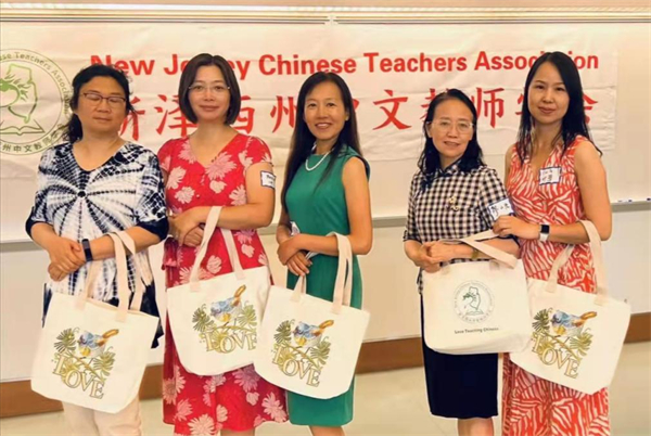 本次活动得到许多社区支持,张世红感谢了蒙特克莱尔大学教授李爱华为会议争取到设施齐备的免费场所;福建同乡会副会长兼青藤教育创始人王朝芳为所有与会老师购买健康午餐。知名律师胡知宇、心理专家Kirschner(英译大意为科斯切纳)、花园地产Dana Dang(英译大意为达纳·丹)捐赠赞助每位与会老师一个精美的布包;福建东南网美国站赞助的福茶、彩虹桥总裁叶晶女士提供的茶叶等,给与会者抽奖助兴。Cheng&Tsui出版社寄来六七本书给老师们抽奖,还给每位与会老师一个“趣学中文”的试用账户,庞帝教育会议现场连线10分钟,并约好7月21号给学会的老师们进行产品使用的专场讲座和辅导。易中文提供了两个教师全年正式账号,可以挑选平台上任一级别的课程。与会老师赞扬本次教学研讨会组织严谨致密又不失欢快轻松,极大地鼓舞了新泽西教师对中文教育事业发展的信心,增强了教师们的归属感和凝聚力。