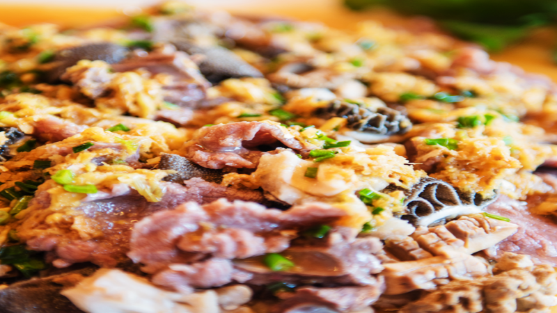 “Shuan Jiu Ping(涮九品)”means ingredient of 9 best parts of cattle,“Lan Fen(烂粉)”means rice noodles mixed with pork soup or beef soup,“Dou tang(兜汤)”which is sliced pork or beef soup, “Deep-fried white radish cake(灯盏糕)”, “Wontons on the bridge(大桥上扁食)”.