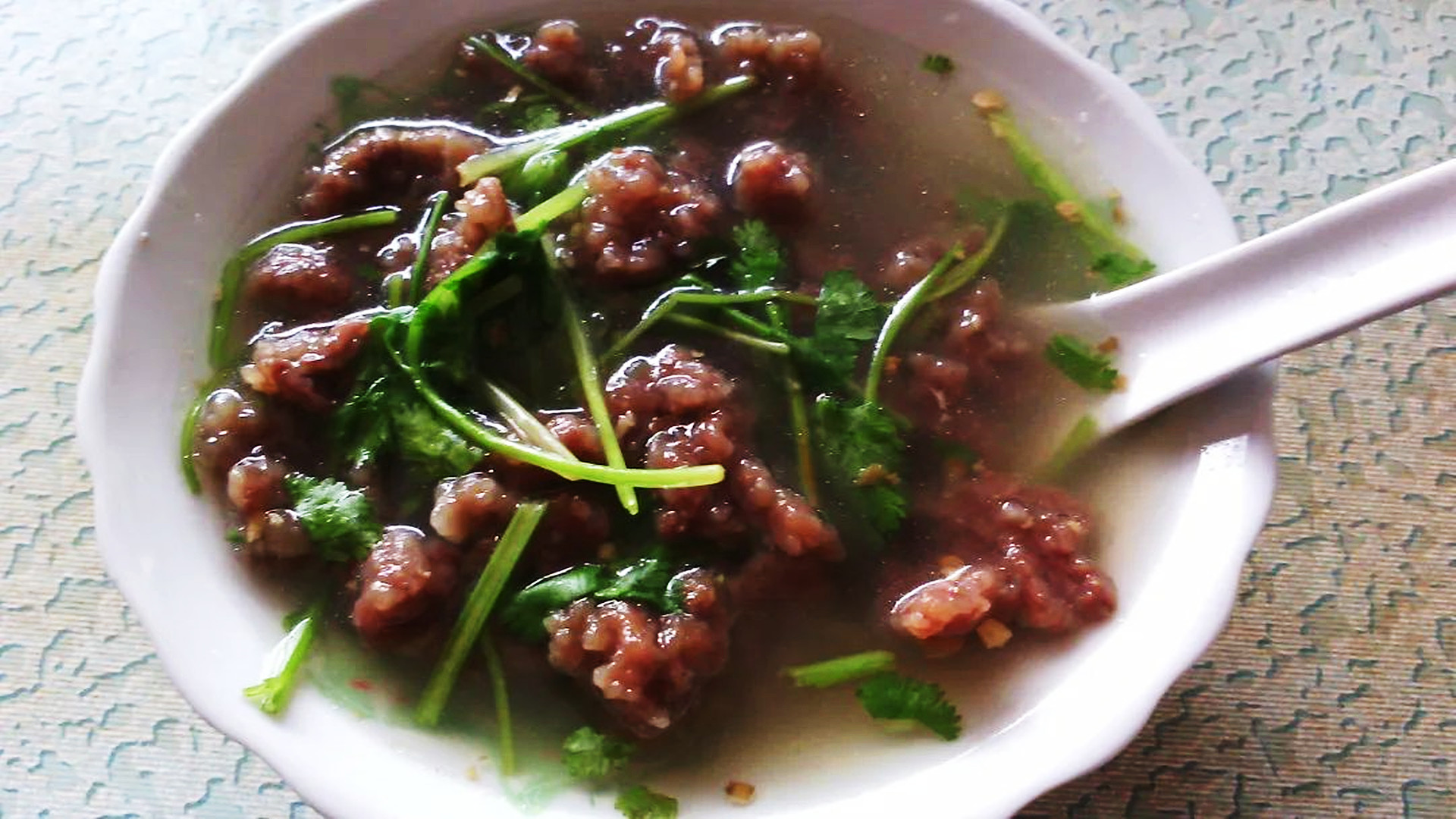 “Dou tang(兜汤)”which is sliced pork or beef soup.